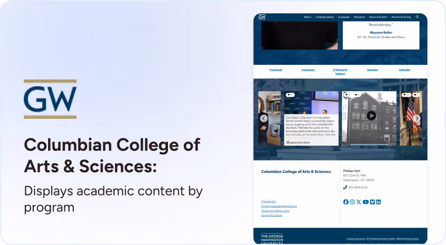 Stimulez l'intérêt des inscriptions en intégrant le contenu quotidien des étudiants sur les pages des programmes universitaires.